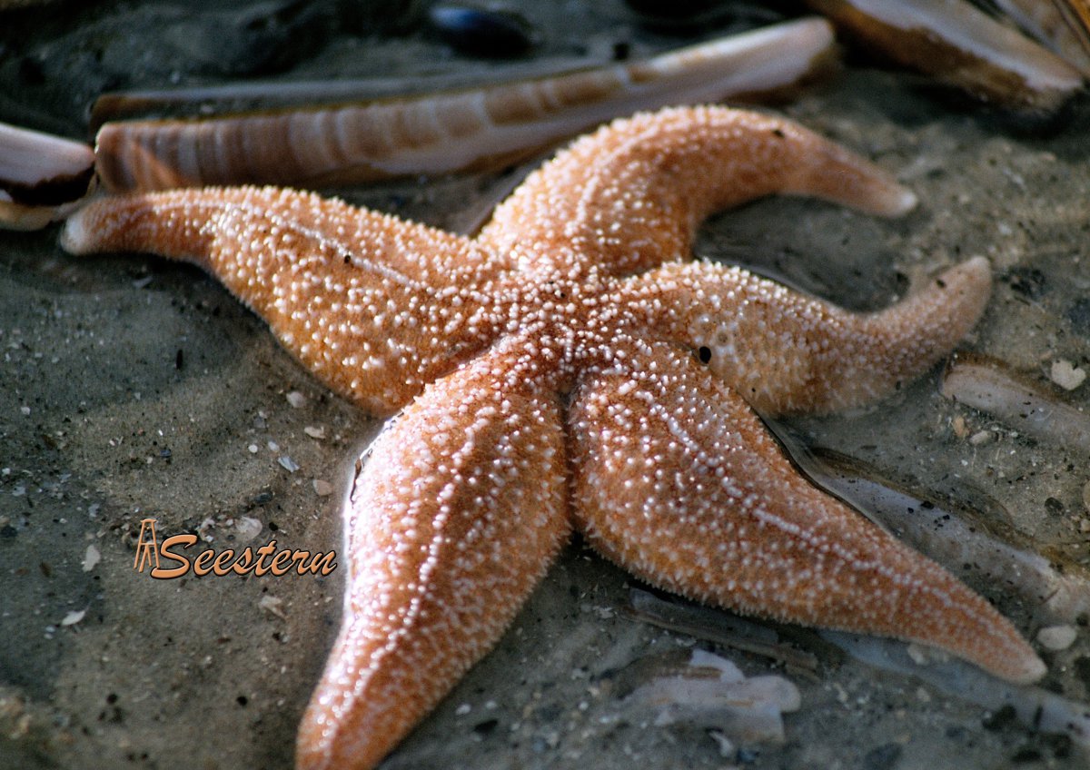 Am Strand gibt es Seesterne verschiedener Arten. Nach einer Sturmflut oder einer Kältewelle am häufigsten zu sehen ist der Gemeine Seestern (Asterias rubens), warum er den Namen „gemein“ hat entzieht sich leider meiner Kenntnis.