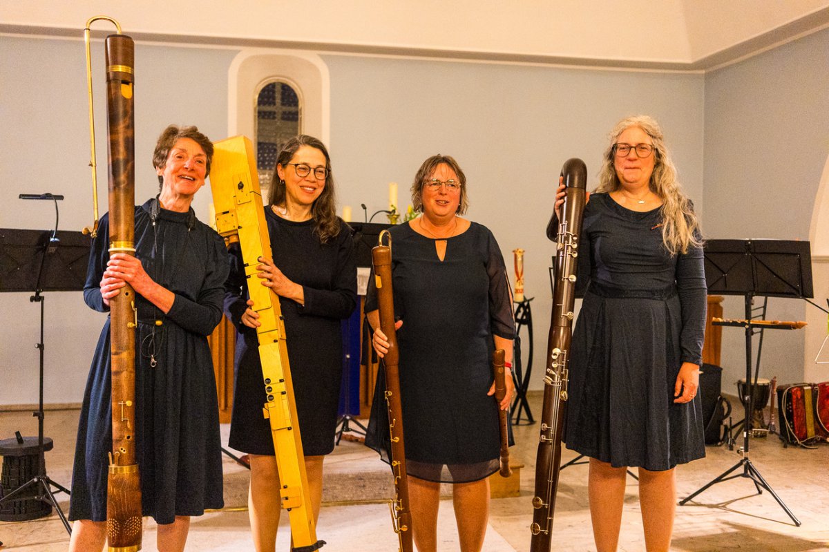 Wer etwas über das beachtliche Instrumentarium erfahren möchte, hat nach dem Abpfiff Gelegenheit: Die Damen stehen zur Rede, wenn es um Sopranino, Sopran, Alt, Tenor, Bass, Großbass oder Subbass geht – alles Blockflöten, versteht sich!