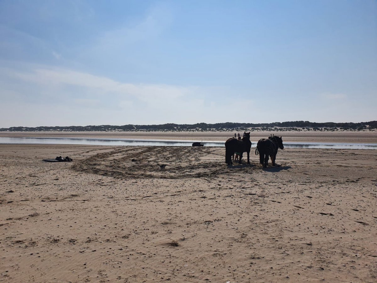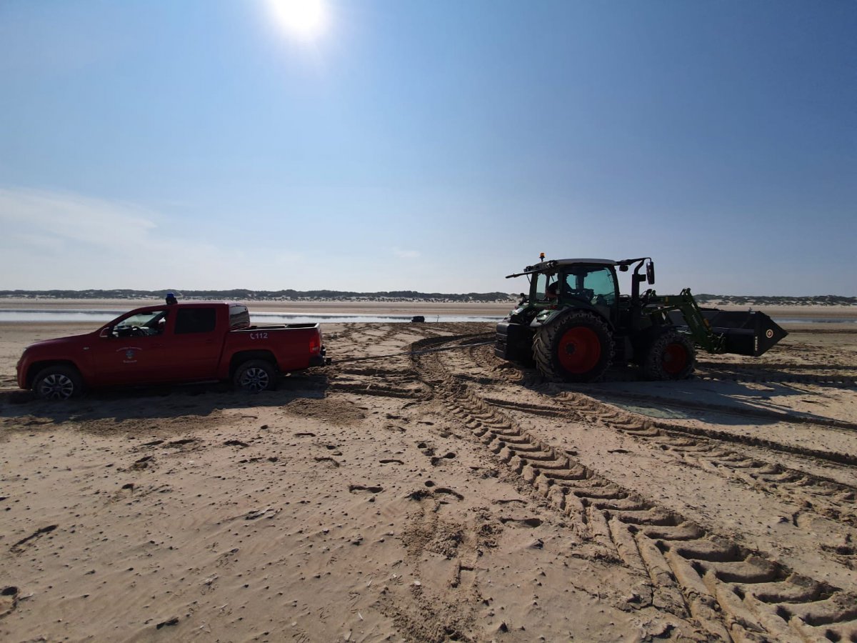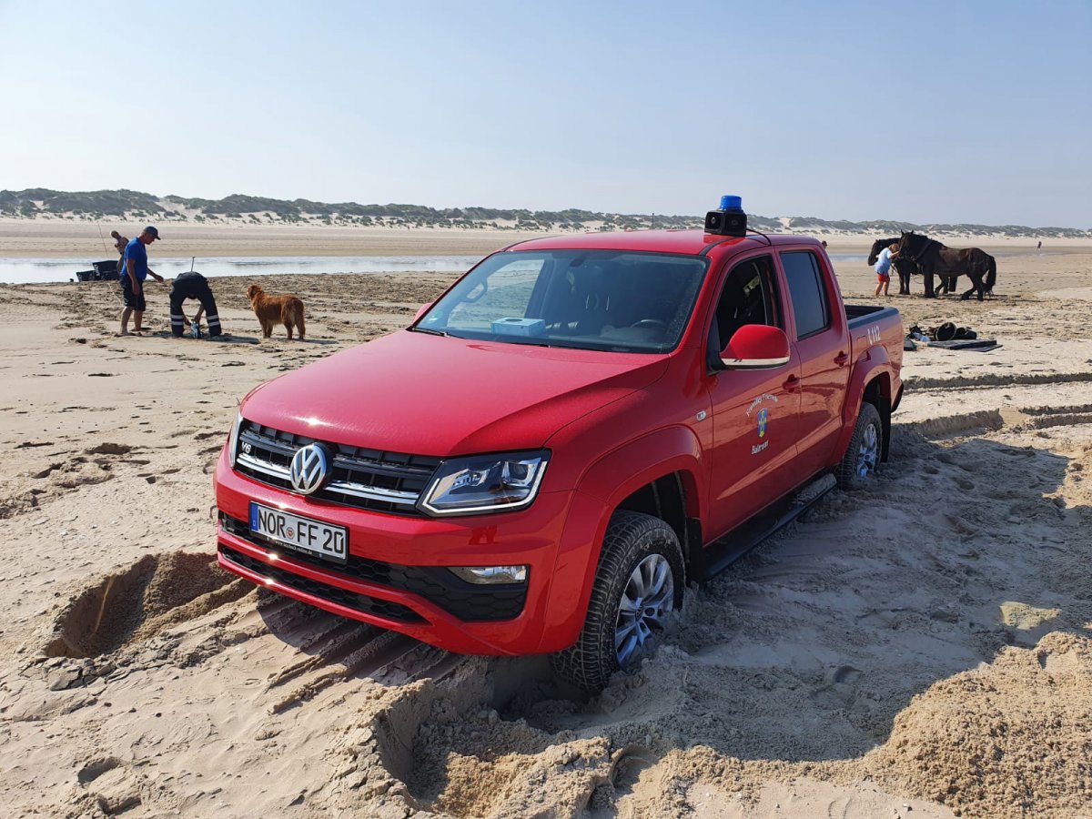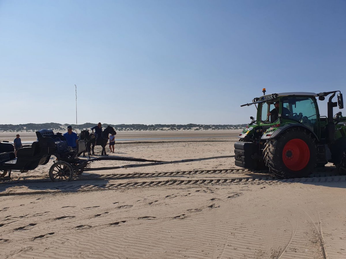 Da die Kutsche sehr tief im Sand steckt, wird der Trecker der Gemeinde Baltrum zusätzlich angefordert. Beim Versuch näher an die Kutsche heranzukommen, um mit der Bergung zu beginnen, fährt sich das Einsatzfahrzeug der Feuerwehr ebenfalls fest.