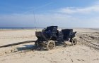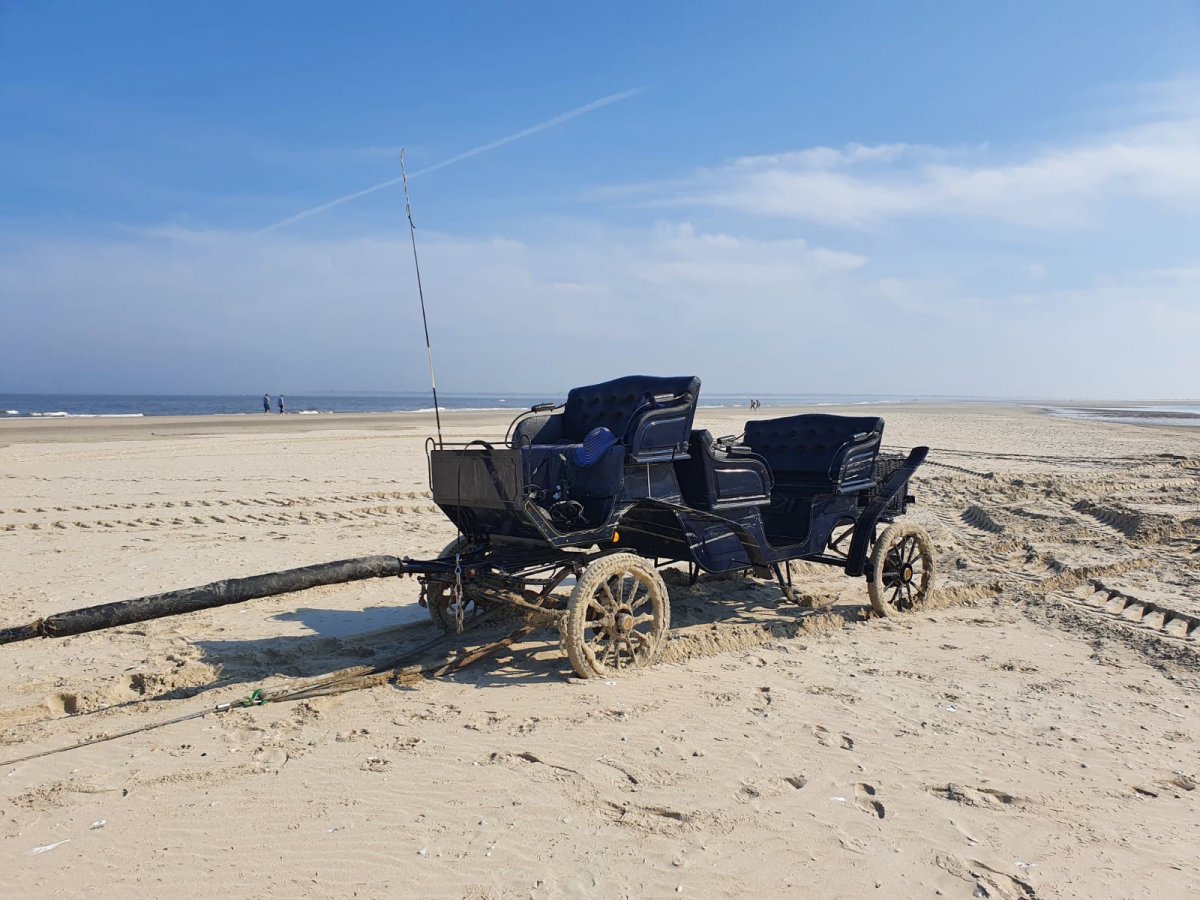 Bei einem Kutschausflug um die Insel ist eine Kutsche im Sand am Oststrand steckengebleiben!