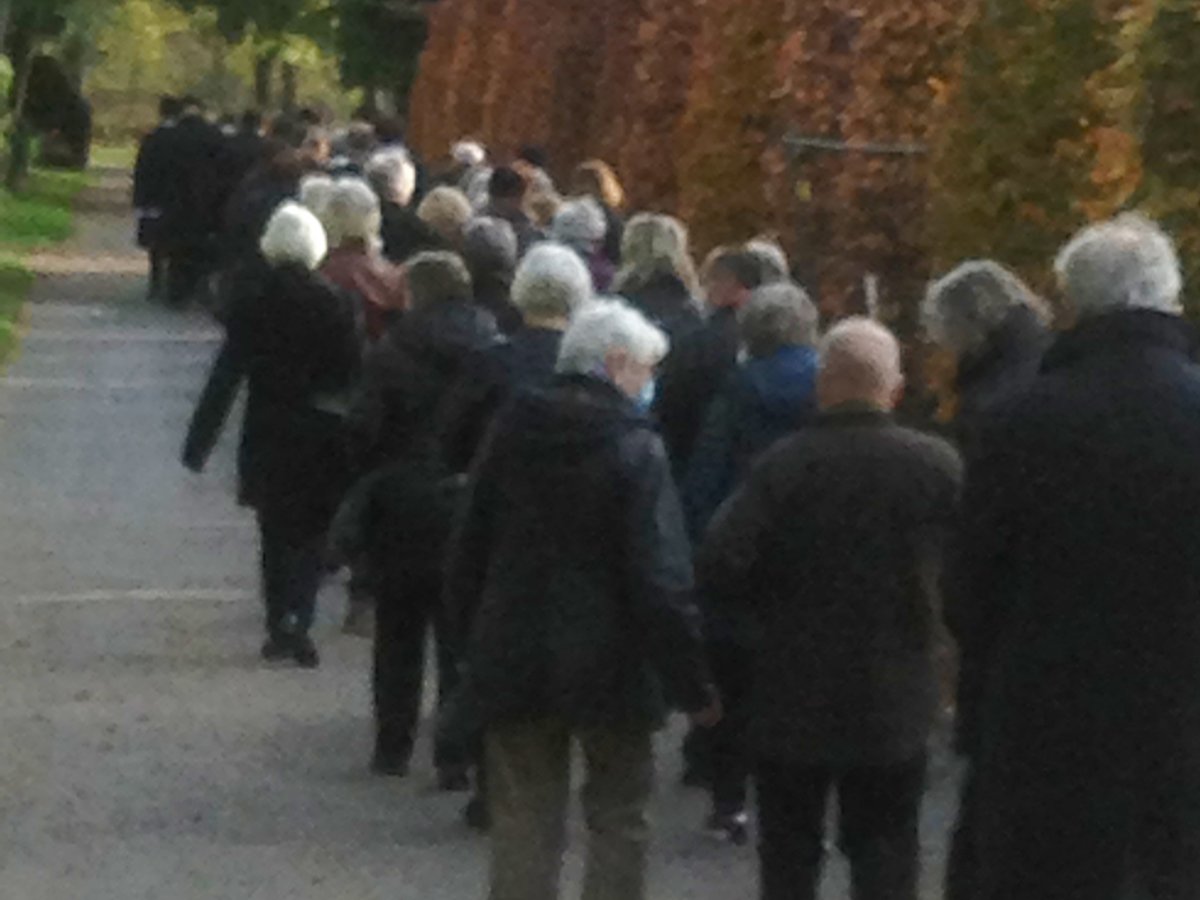 Nicht alle Gäste finden in der Halle Platz, Lautsprecher übertragen die Worte des Pfarrers, der ihren langen Lebensweg schildert, immer wieder kommt er auf unsere Insel zu sprechen, betont die Netzwerke, die sie im Alter stützten und ihre nie versiegende Lebensfreude. Ein naher Verwandter ergänzt die Abschiedsworte und leitet über zu zwei Schubertstücken, die sie selbst für diesen Tag ausgewählt hatte.