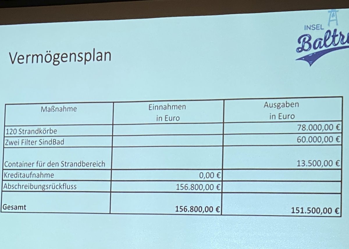 Es werden 120 Strandkörbe angeschafft und ein Filter für das SindBad. Kreditaufnahme ist nicht geplant.
