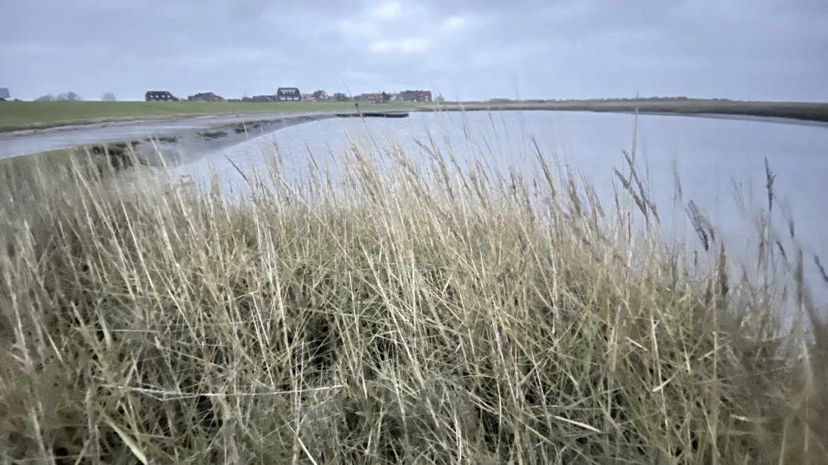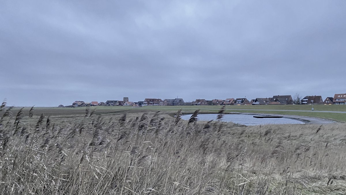 Wenn das so weiter geht, werden wir uns hier auf Baltrum bald nur noch an der Haltung erkennen. Im Gange wie auf dem Drahtesel. Gegenlicht ist schon sportlich, hat der Sonnabend gezeigt. Heute war das Ratespiel "Wer ist wer?" gar nicht zu lösen. Ein großes tiefes dunkles Grau. Wir werden uns nicht mehr wie sonst und selbstverständlich über Kilometer hinweg von Weitem erkennen, weil wir unbemerkt neufarbige Jacken anhaben, komische Schals, andere Stiefel, moderne Brillen, dicke Handschuhe und große Kapuzen. Oder sind ungeschminkt, wozu auch, wie auch, für wen auch? Wir sehen nicht mehr so knackig aus wie wir uns noch letztes Jahr einbildeten, gemütlicher dafür... Braun gebrannnt ist hier kein Mensch, wie wir das sonst im Winter kennen und genau wissen, woher die Bräune kommt, von Fuerteventura, Madeira, Sal, aus Kapstadt, DomRep oder sonst woher. Die Konstellationen am Strand und auf den Wegen sind ebenso sonderbar, aber wer geht sonst auch schon alltags ewig als Ehepaar spazieren? Oder als ganze Familie? Mit neuem Hund? Ohne?
