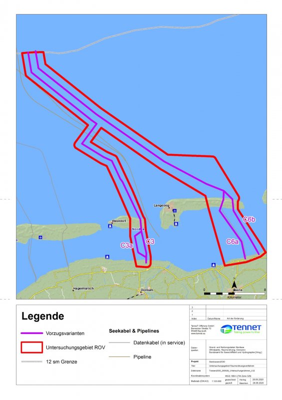 TenneT Offshore GmbH und Amprion Offshore GmbH planen Korridore durch das niedersächsische Küstenmeer (12-Seemeilen-Zone) für zukünftig zu entwickelnde Netzanschlusssysteme zur Anbindung von Offshore-Windparks in der ausschließlichen Wirtschaftszone der deutschen Nordsee. Für die Planung hat am 19.11 2019 eine Antragskonferenz in Jever stattgefunden, in der u.a. auch mögliche und sinnvolle Vorhabenalternativen diskutiert wurden. Die Festlegung des räumlichen und sachlichen Untersuchungsrahmens erfolgte am 30.04.2020.
