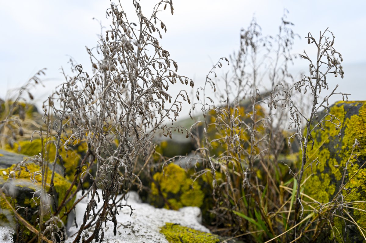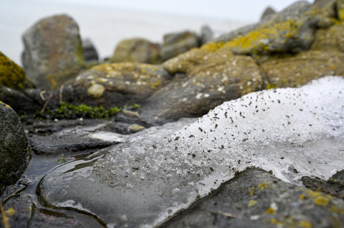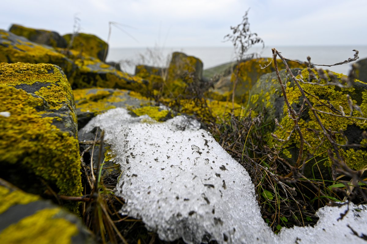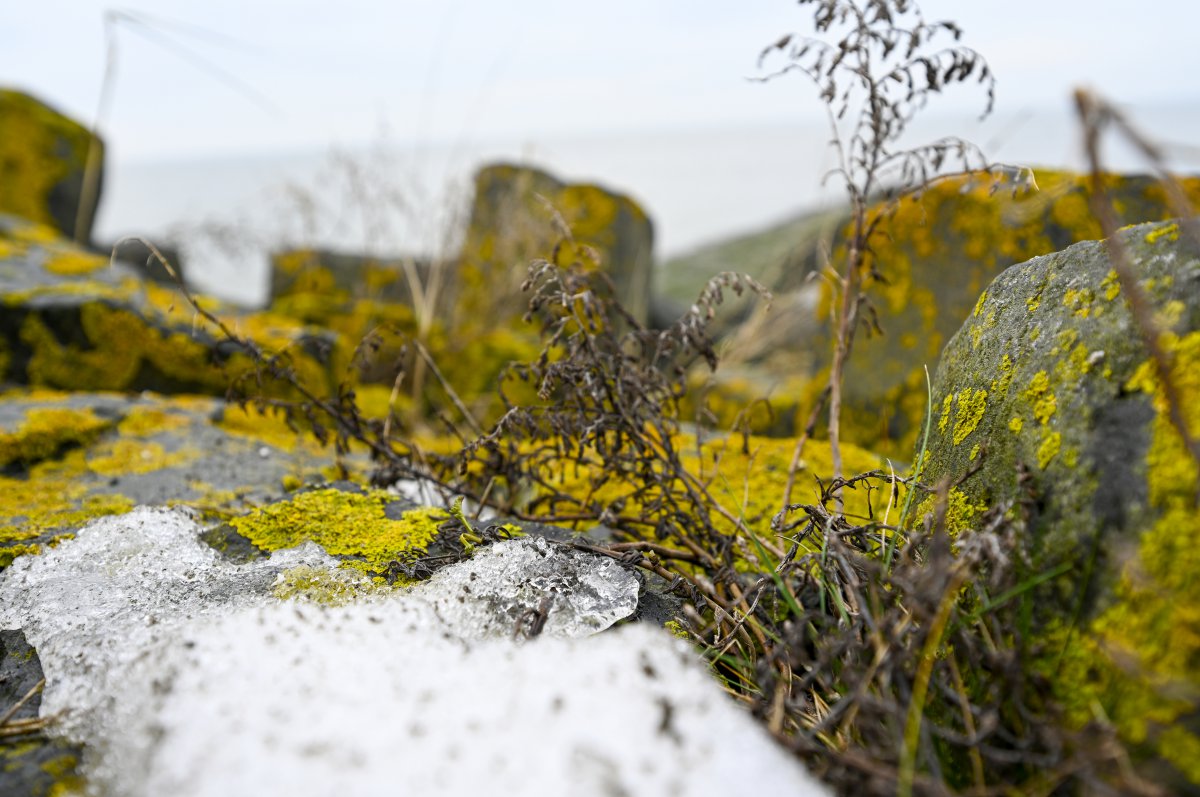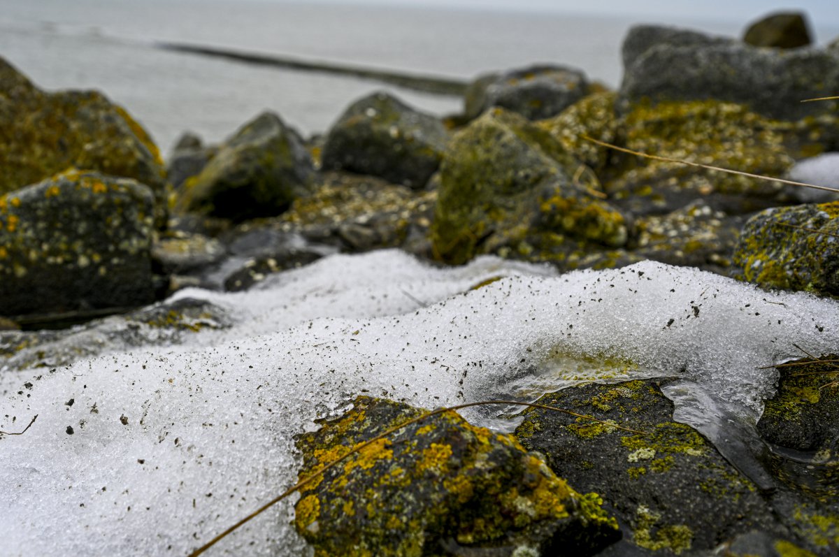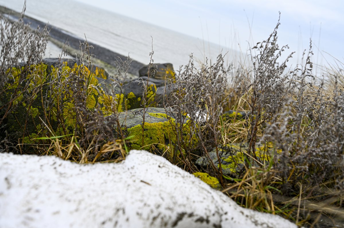 Solange schauen wir auf die verwunschenen Minilandschaften, die der restliche Schnee zwischen die flechtenüberzogenen Basaltsteine an der Strandmauer zaubert, atmen tief die gute Winterluft ein und träumen uns einfach weit weg.