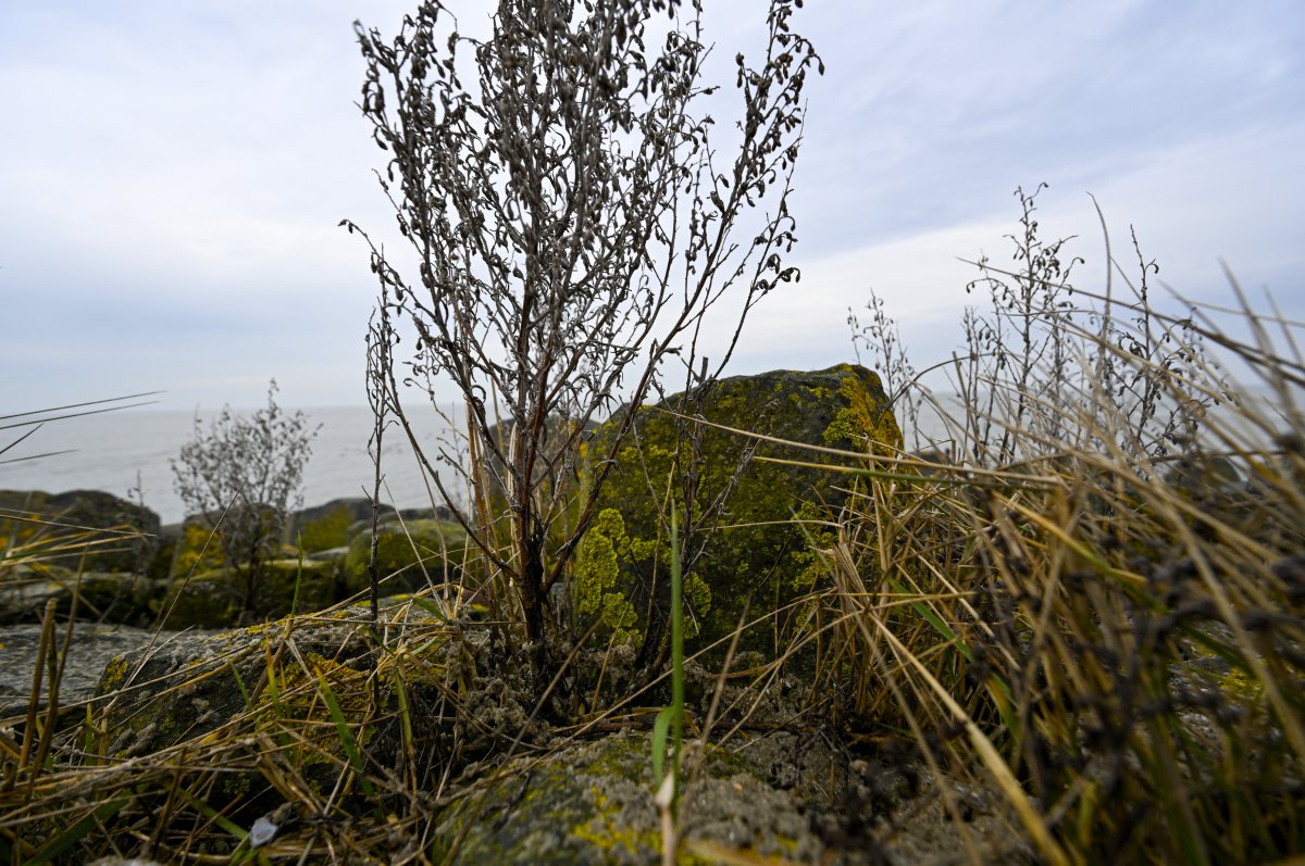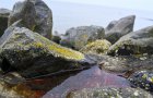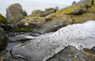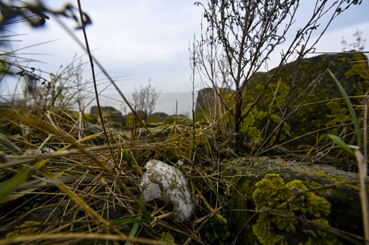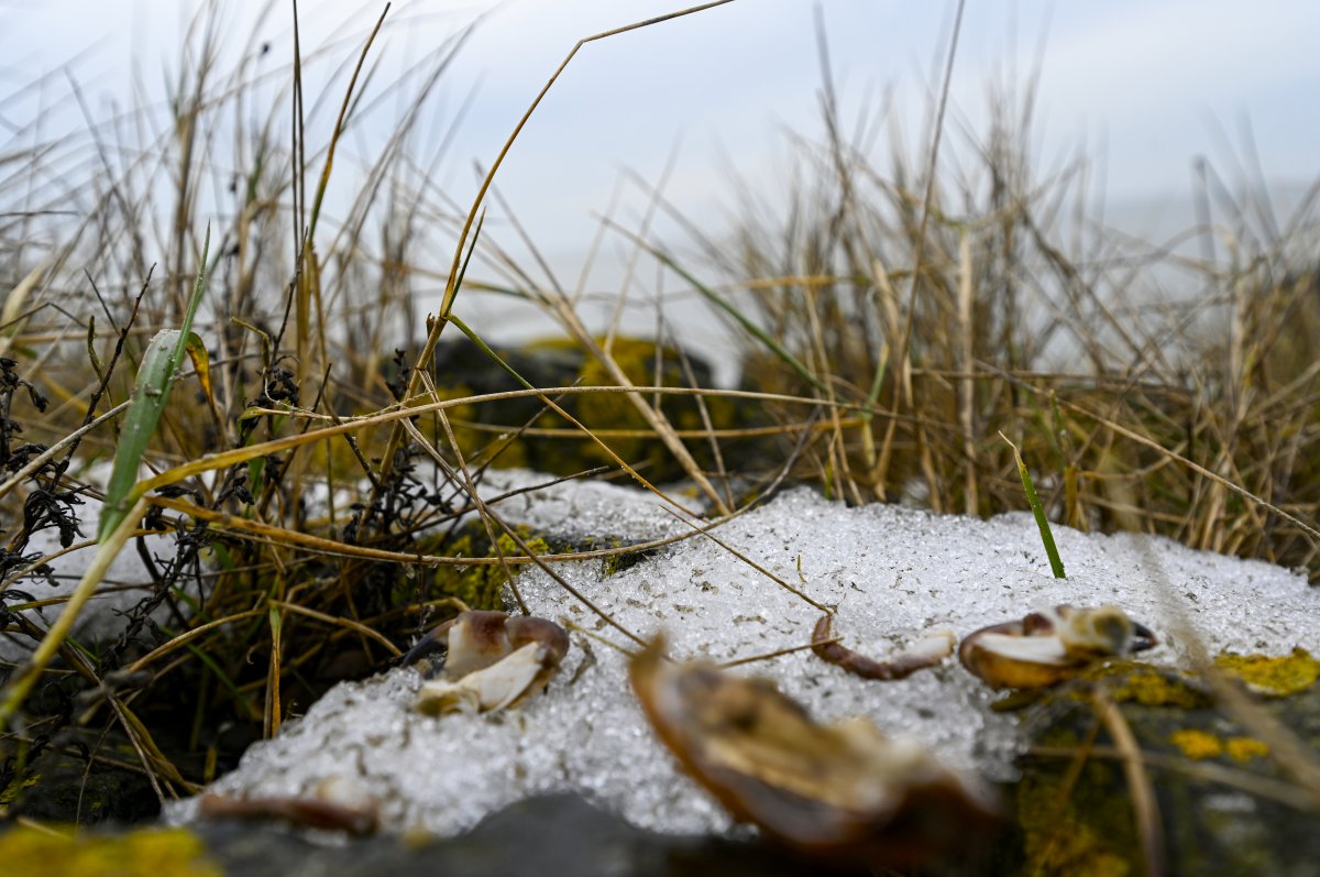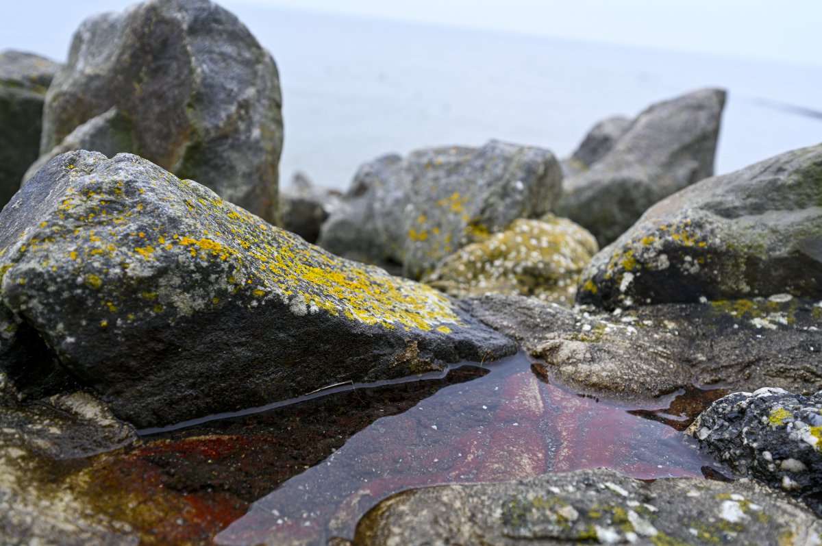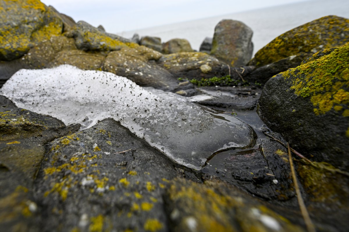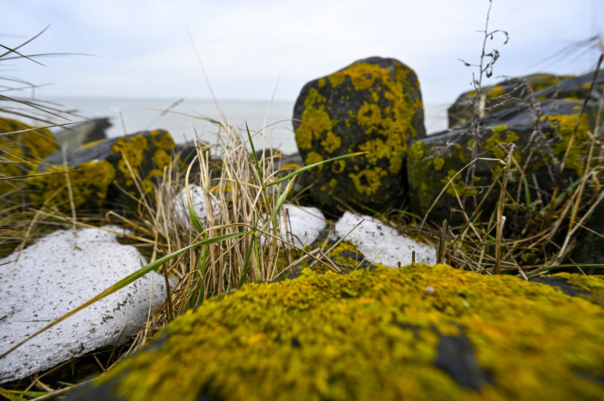 Solange schauen wir auf die verwunschenen Minilandschaften, die der restliche Schnee zwischen die flechtenüberzogenen Basaltsteine an der Strandmauer zaubert, atmen tief die gute Winterluft ein und träumen uns einfach weit weg.