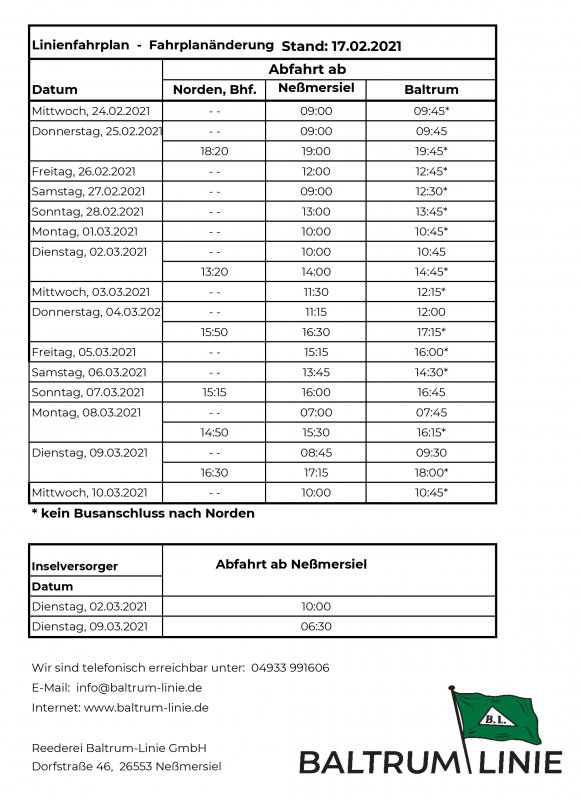 Baltrum-Online.de ist ein werbefreies und unabhängiges Angebot. Wir berichten ehrenamtlich und frei über die Insel Baltrum und stehen in keinerlei Verbindung zur Gemeinde Baltrum.