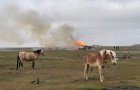 Das traditionelle Osterfeuer! wurde heute Mittag entzündet und ohne Versammlung nach Verordnung unter Polizeischutz abgebrannt.