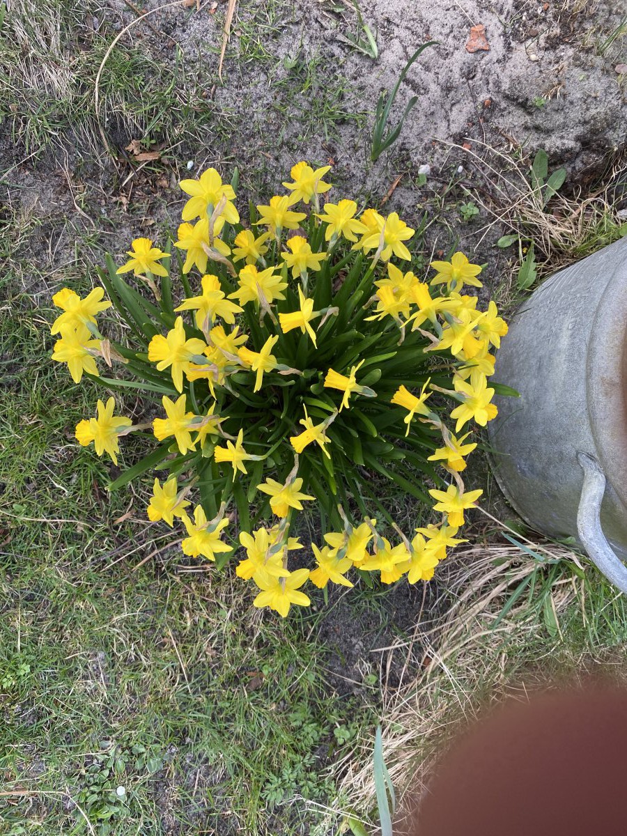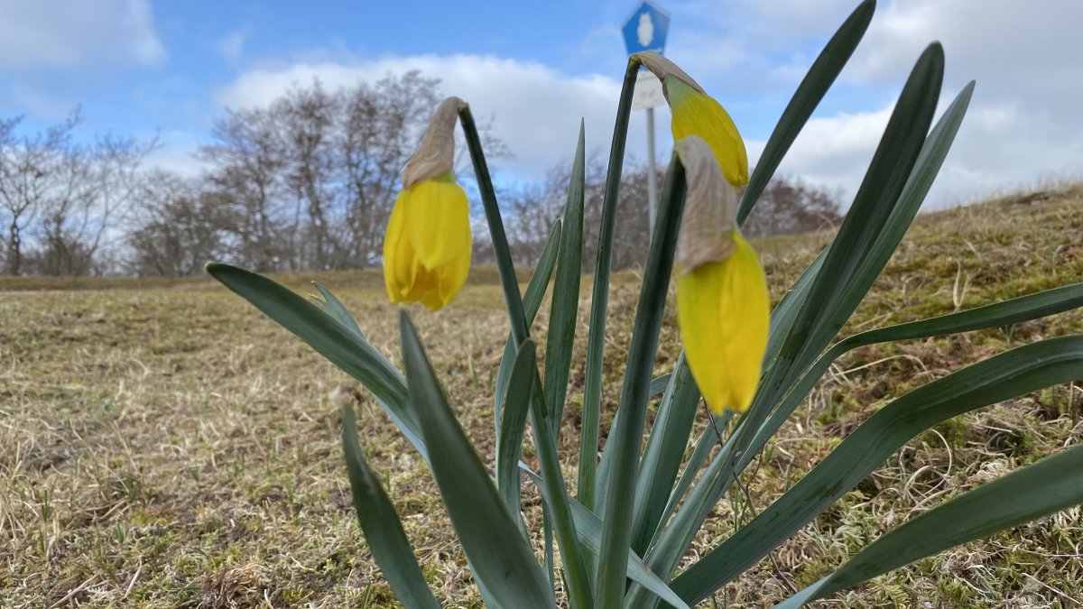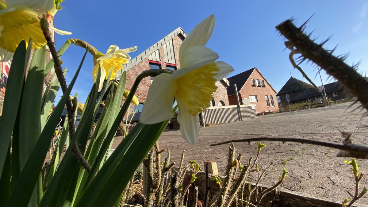Sie hatten es richtig gut in diesem Jahr, die Narzissen und Osterglocken. Prächtige Köpfe reckten sich überall in den Himmel, an vielen Stellen sind die gelben Tupfen weithin zu sehen. Es gibt regelrechte Osterglockenhecken, wovon sich allerdings manche in den hintersten Gärten verstecken... und dort reichlich Ernte für einen vollen Osterstrauß bieten. Bis gestern war das Wetter vorteilhaft, nicht zu kalt, nicht zu warm, nicht zu viel Wind aber auch nicht zu wenig. Erst am Ostersonntagabend hat ein ziemlich frisches Lüftchen aufgebriest, und der April macht jetzt mit Hagelschauern und Schneesgestübern wettermäßg seinem Namen alle Ehre. Die Osterglocken hatten es also punktgenau zum Fest geschafft. Wenn sie demnächst verblüht sind, kann das Frühlingsgrün kommen!