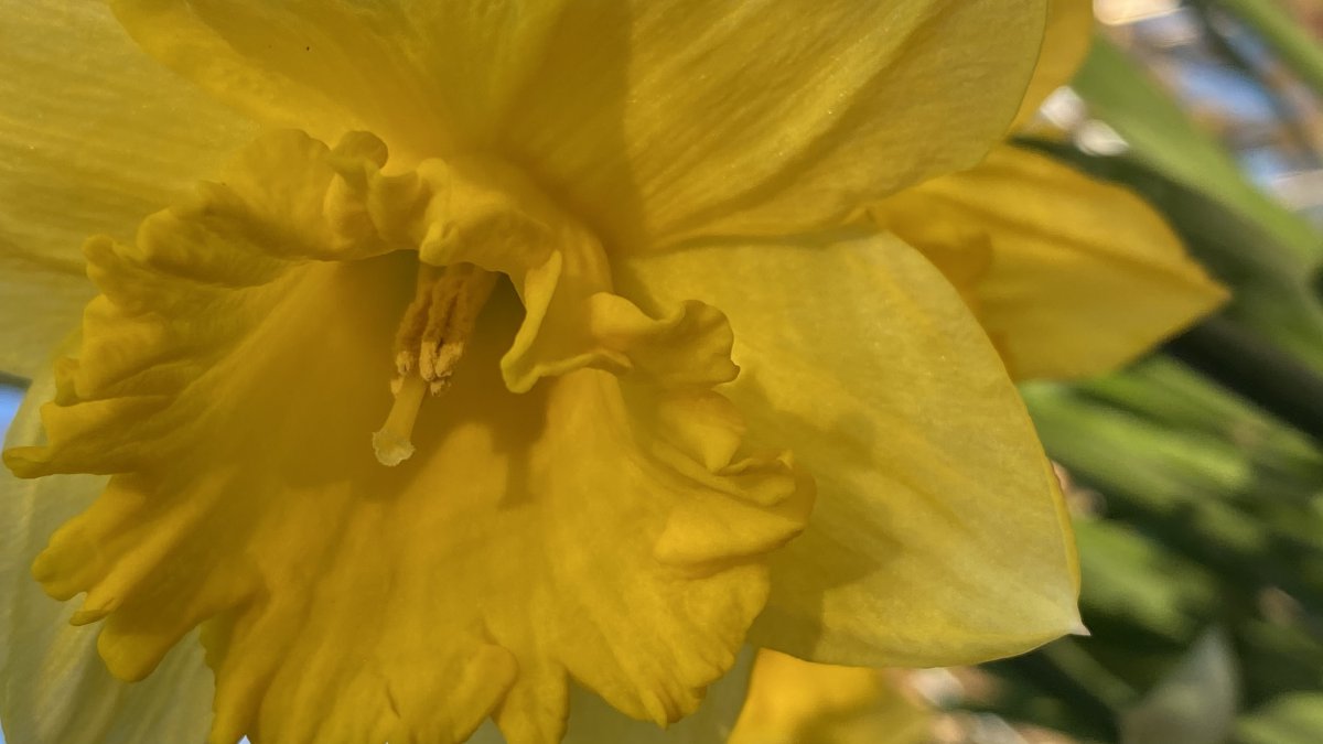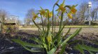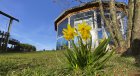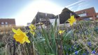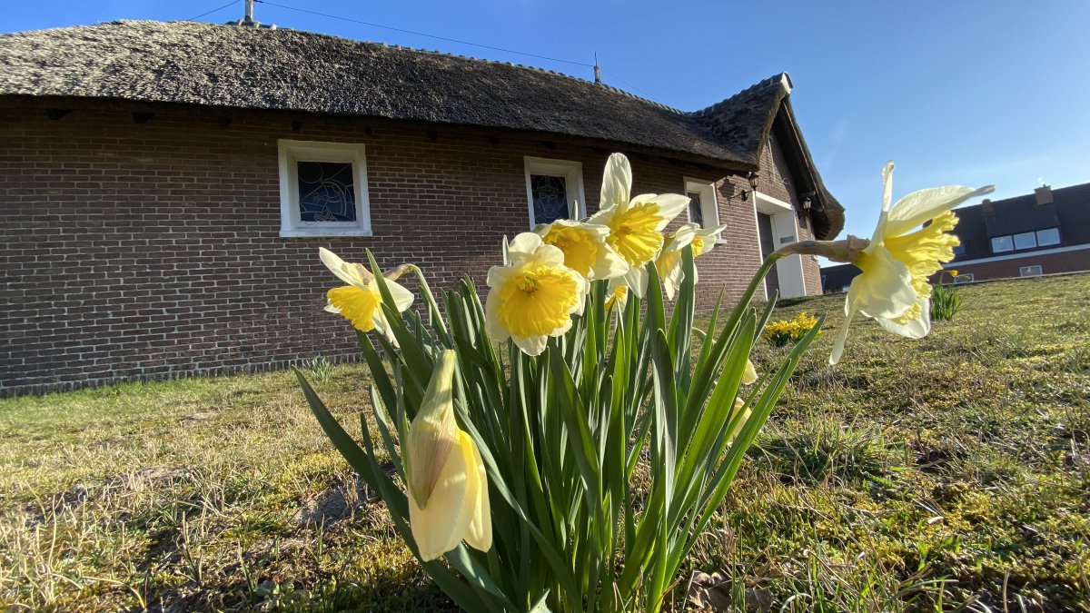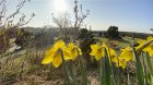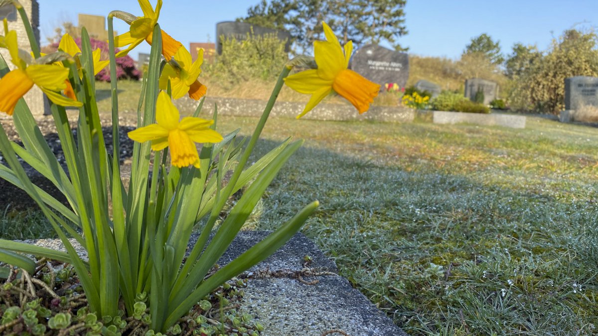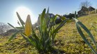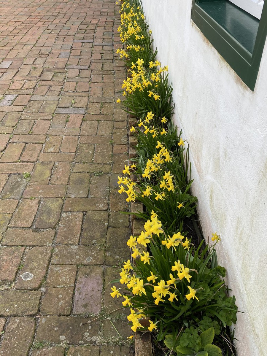 Sie hatten es richtig gut in diesem Jahr, die Narzissen und Osterglocken. Prächtige Köpfe reckten sich überall in den Himmel, an vielen Stellen sind die gelben Tupfen weithin zu sehen. Es gibt regelrechte Osterglockenhecken, wovon sich allerdings manche in den hintersten Gärten verstecken... und dort reichlich Ernte für einen vollen Osterstrauß bieten. Bis gestern war das Wetter vorteilhaft, nicht zu kalt, nicht zu warm, nicht zu viel Wind aber auch nicht zu wenig. Erst am Ostersonntagabend hat ein ziemlich frisches Lüftchen aufgebriest, und der April macht jetzt mit Hagelschauern und Schneesgestübern wettermäßg seinem Namen alle Ehre. Die Osterglocken hatten es also punktgenau zum Fest geschafft. Wenn sie demnächst verblüht sind, kann das Frühlingsgrün kommen!
