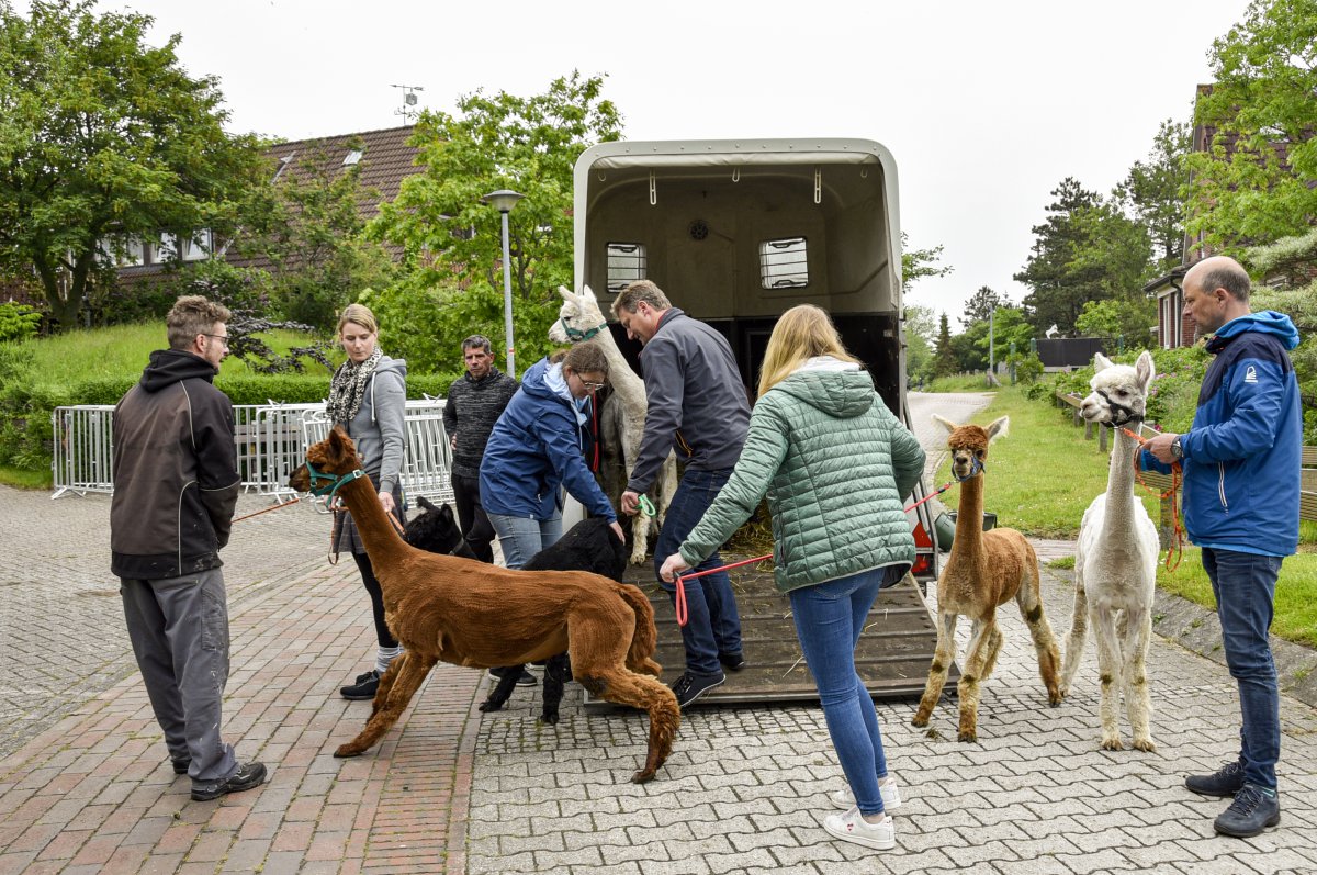 Die Tiere sind Huacaya-Alpakas. Maya mit Cora, Layla mit Ella und Luna mit Lisa sind bunt gemischt, typisch alpakafarben eben und bringen auf der Privatweide der Bruns-Strenges bunte Tupfen in das frische, saftige, gut gepflegte Grün. Die beiden ältesten Tiere sind von 2014, die zwei jüngsten Alpakas sind gerade ein Jahr alt. Die frische Seeluft wurde beim Aussteigen aus dem Autohänger, der per Pferdestärke direkt zum neuen Zuhause der Andentiere gebracht worden war, neu-gierig aufgesogen. Nachdem auch die letzte Dame sich überzeugen lassen hatte, sich dem künftigen Inselschicksal nicht bockig sondern erfreut entgegenzustellen und sich auf die Zukunft als Inselalpaka zu freuen, wurde ebenso neugierig gemeinsam die Umgebung und das weite Areal inspiziert und offensichtlich für gut befunden! Sechs Alpakamädels, eine süßer als die andere, alle mit einem eigenen Charakter – das wird spannend!