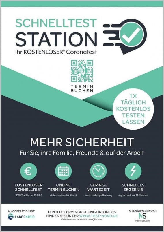 Die Schnellteststation (direkt vor dem „Haus des Gastes“) bietet am Sonntag, dem 25. Juli 2021 in der Zeit von 9:00 bis 11:00 Uhr an Corona Tests durchzuführen. Ab 22. Juli 2021 (morgen) können Testtermine unter
