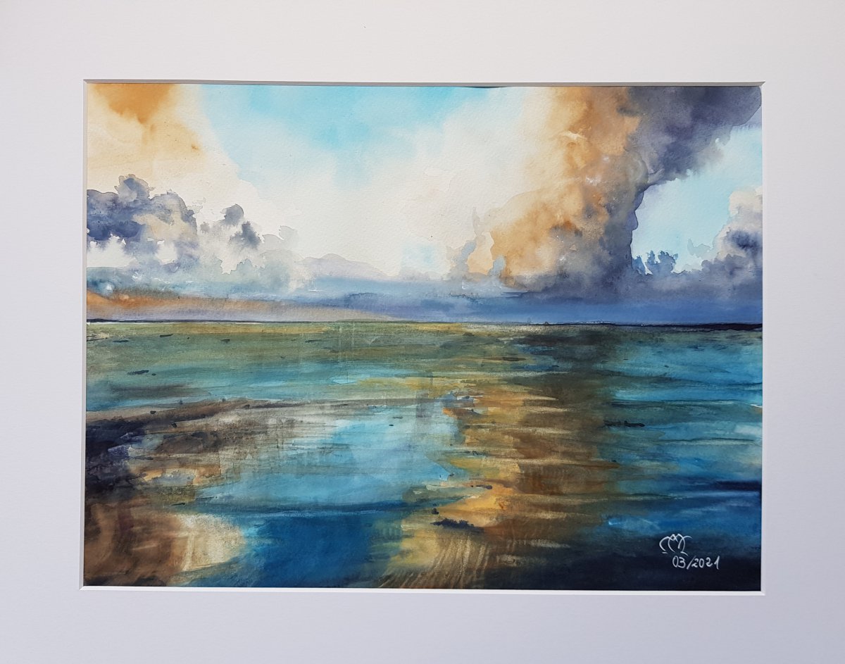 Das Bild "Wattenmeer" von Markus Neumann wurde zu 570 Euro von Tobias Margenfeld zugunsten der Flutopfer ersteigert.