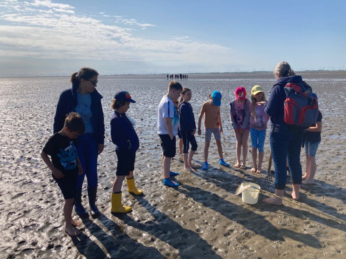 Es gab ein Herzmuschelwettrennen, kleine Experimente und spannende Geschichten über das geheime Leben der Wattbewohner, die z.T. mehrstöckige unterirdische Höhlen bauen.