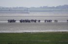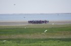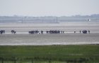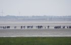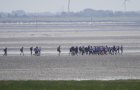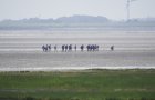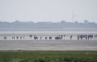 Die Entfernung der kleinsten Ostfriesischen Insel zum Festland ist von allen sieben die geringste, und somit das Watt an dieser Stelle prädestiniert für Wattwanderungen zwischen Küstendeich und Nordseeinsel v. v. Am Mittwochmittag war das Watt voll mit Gruppen von Wattwanderern - wie früher!