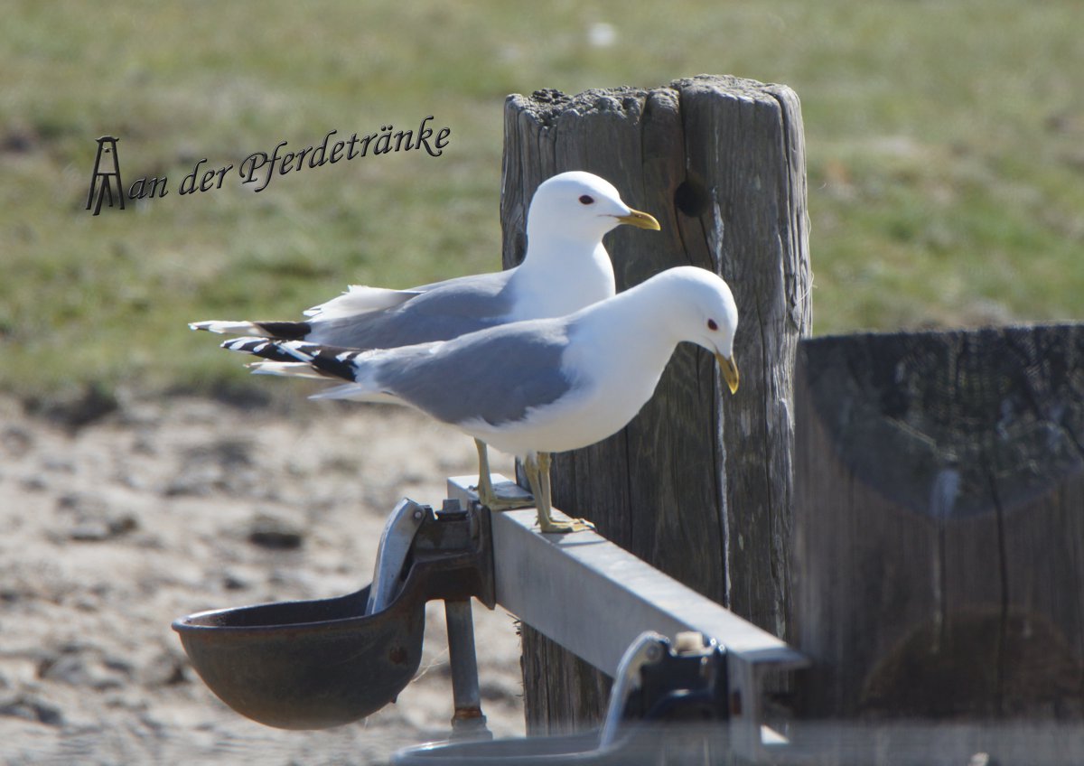 Themenvogel in diesem Jahr ist die Sturmmöwe - Larus canus, gut erkennbar an ihrem gelben Schnabel und ebenso gelben Beinen, vor allem bei den ausgewachsenen Vögeln. Ein wenig größer als die Lachmöwe, aber um einiges kleiner als die Silbermöwe. Die weiteren ornithologischen Unterschiede überlasse ich jenen, die auf Google suchen und beschränke mich auf Fotos.