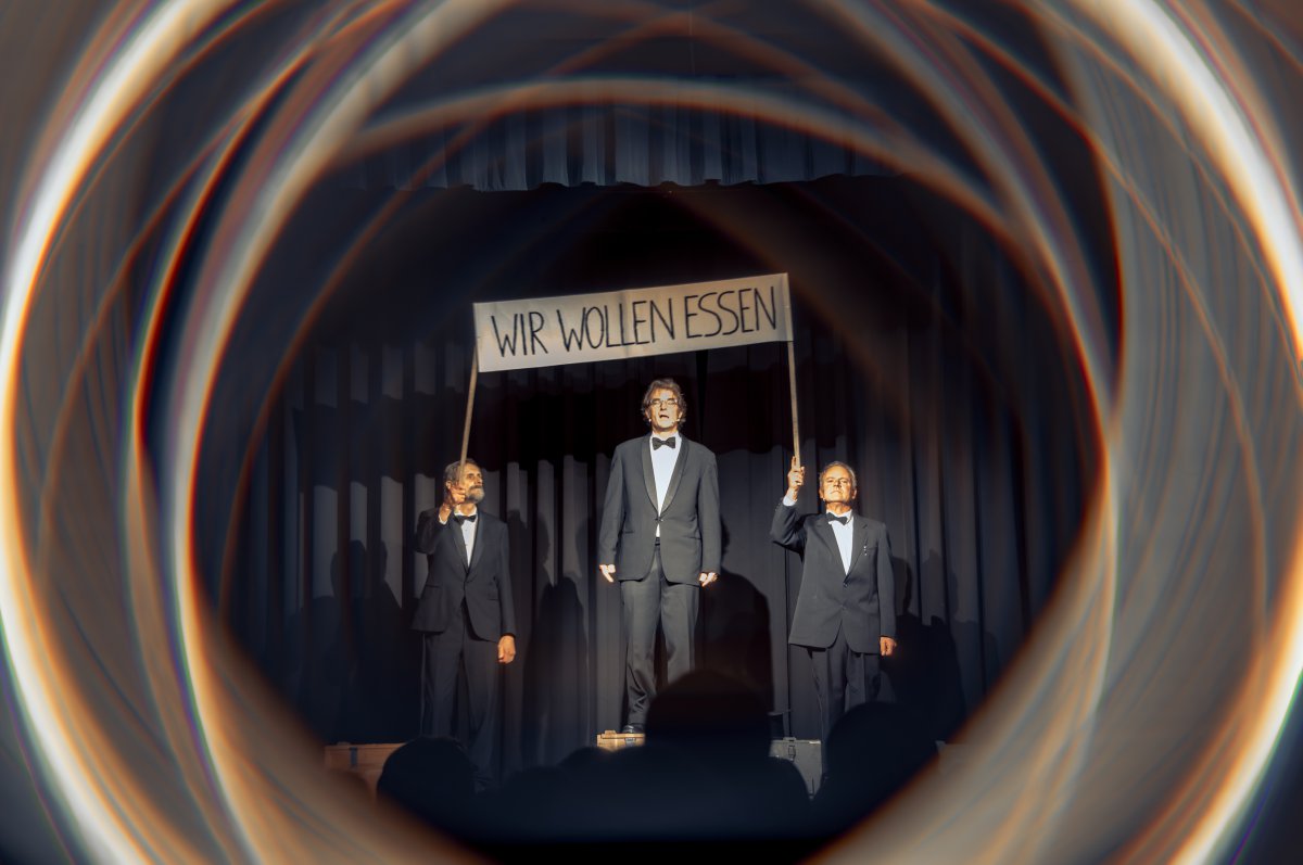„Auf hoher See“ kommt schon in der ersten Minute auf den Punkt – es geht um Manipulation, und Täter-/Opfer-Konstellation, um Eskalation, berechnende Koalition. Alles hochaktuell. Mitunter bleibt einem das Lachen im Halse stecken. Doch die Schauspieler sind großartig und sind mit großem Herzen, feinem Witz und spitzbübiger Leichtigkeit am Werk: Denis Metz, der auch die Regie führt, Torsten Moschner, Winfried Picard und Uwe Friedrich ringen dem Absurden bis in den letzten Winkel eindrücklichen Humor ab. Es wird nicht lange gefackelt, und es steht fest, wer auf dem Floß ohne Nahrungsmittel als erster gegessen werden soll....