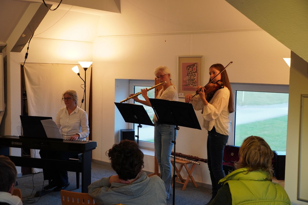Karen Kammer (Klavier), Beate Metz (Geige) und Sabine Hinrichs (Flöten) dürfen sich eine kleine Ruhepause gönnen, um in den Wintermonaten neue Melodien einzuüben.