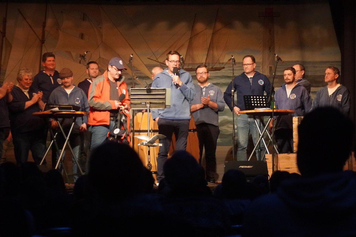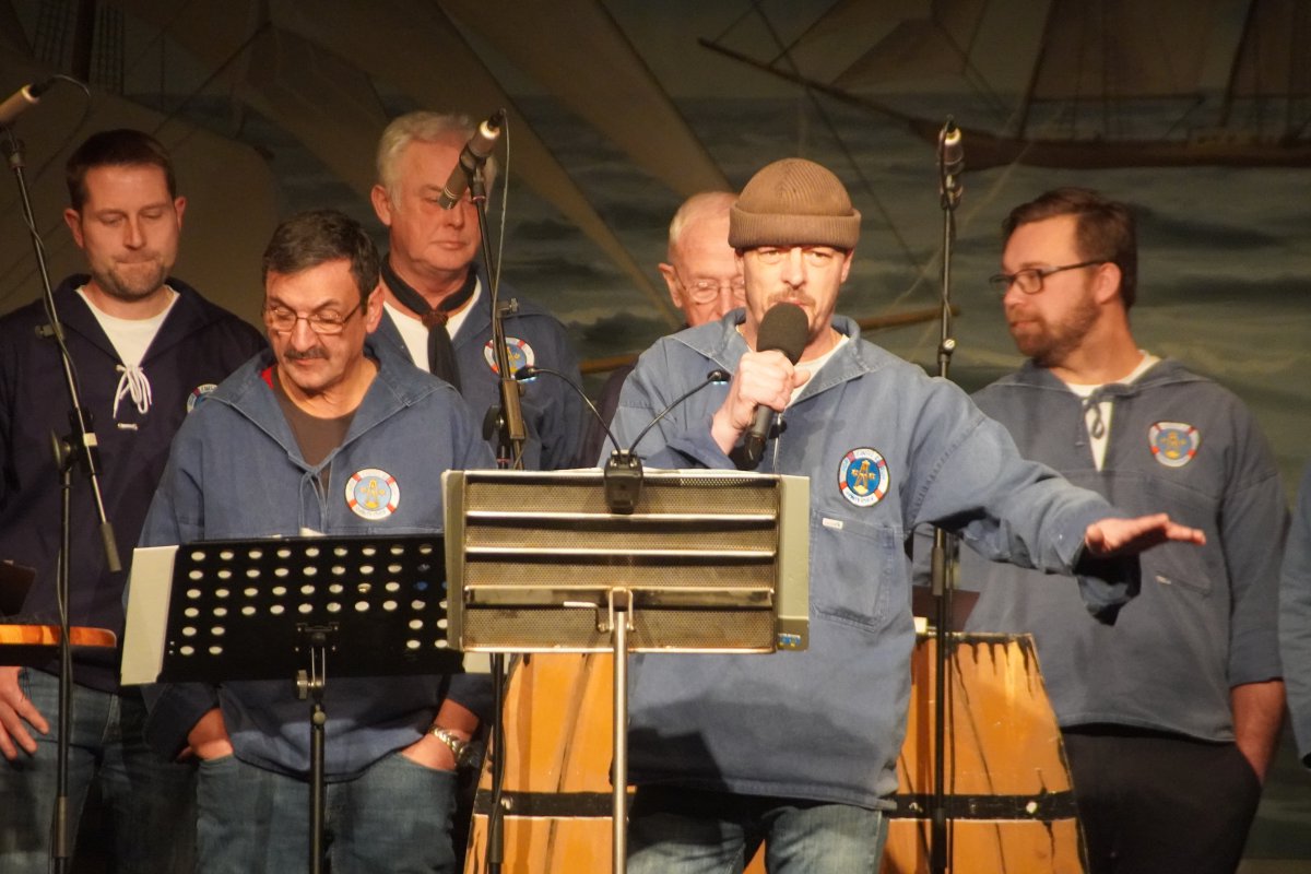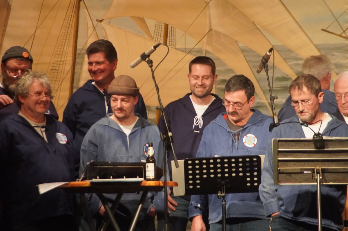 Die Moderation, der Gesang der Shantymen, die Instrumente, die Technik und die Pausencrew rundeten den Abend zu einem Vergnügen ab, bei dem auch das Abschlussgetränk nicht fehlen durfte.