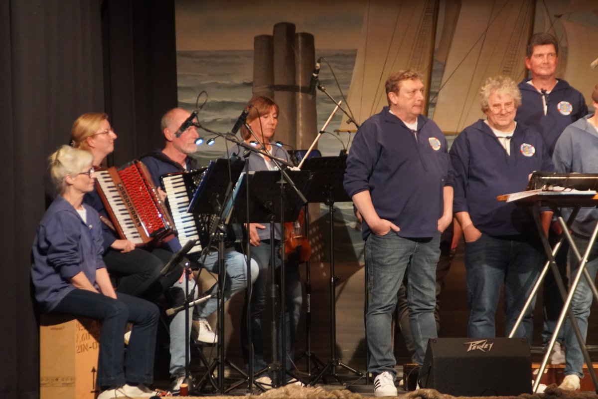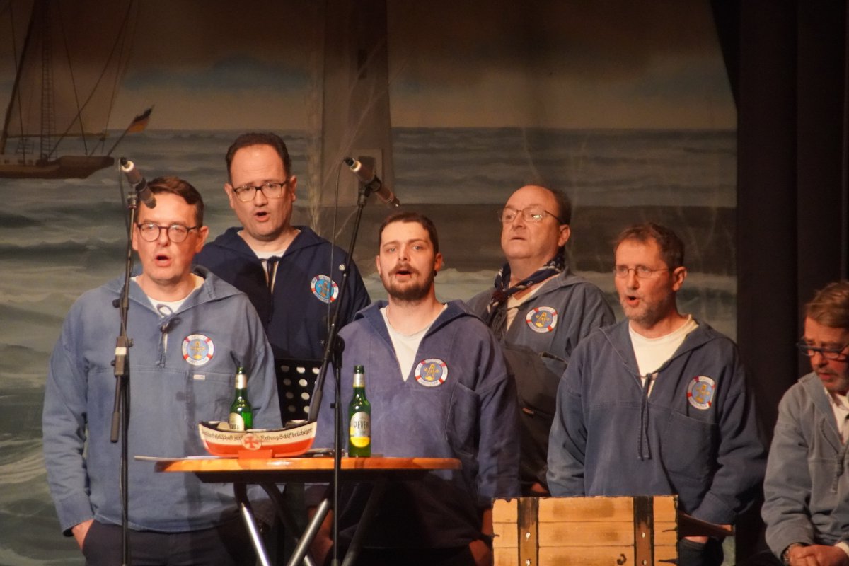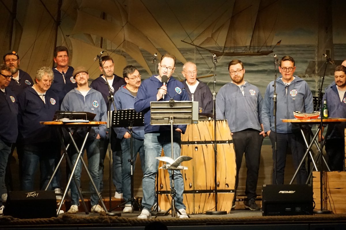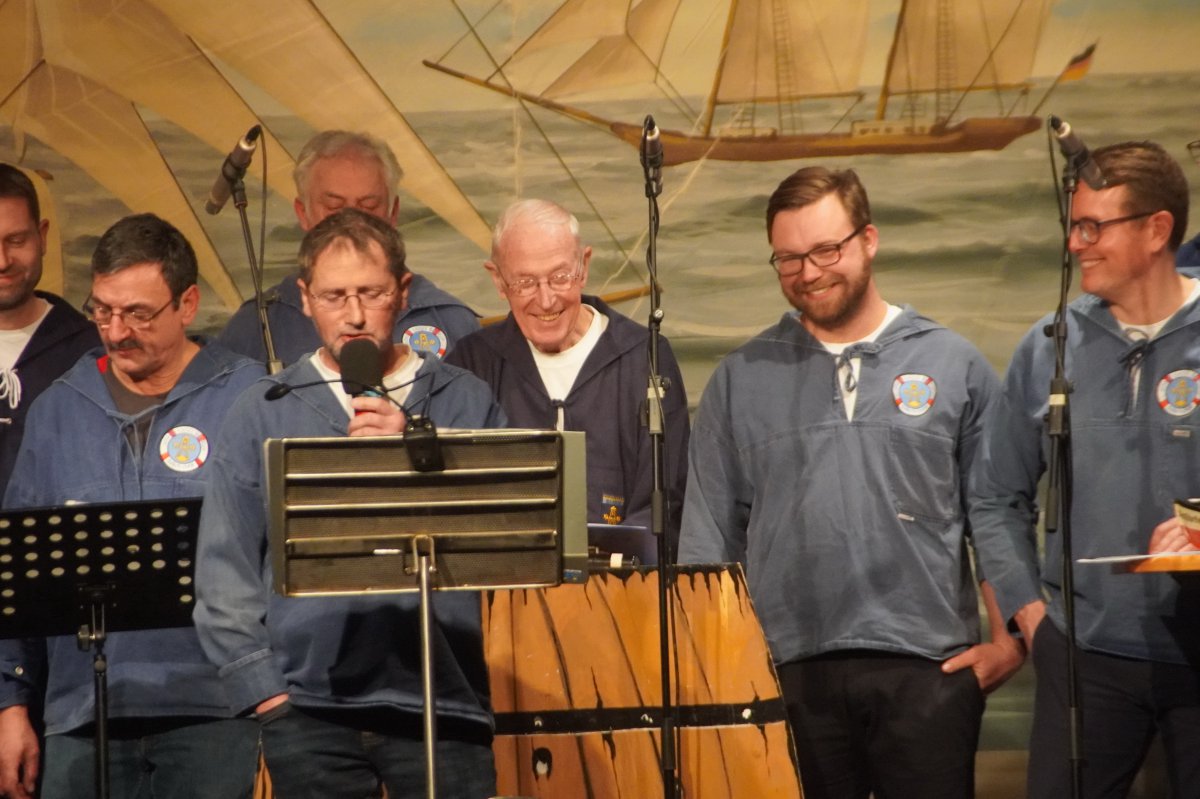 Die Moderation, der Gesang der Shantymen, die Instrumente, die Technik und die Pausencrew rundeten den Abend zu einem Vergnügen ab, bei dem auch das Abschlussgetränk nicht fehlen durfte.