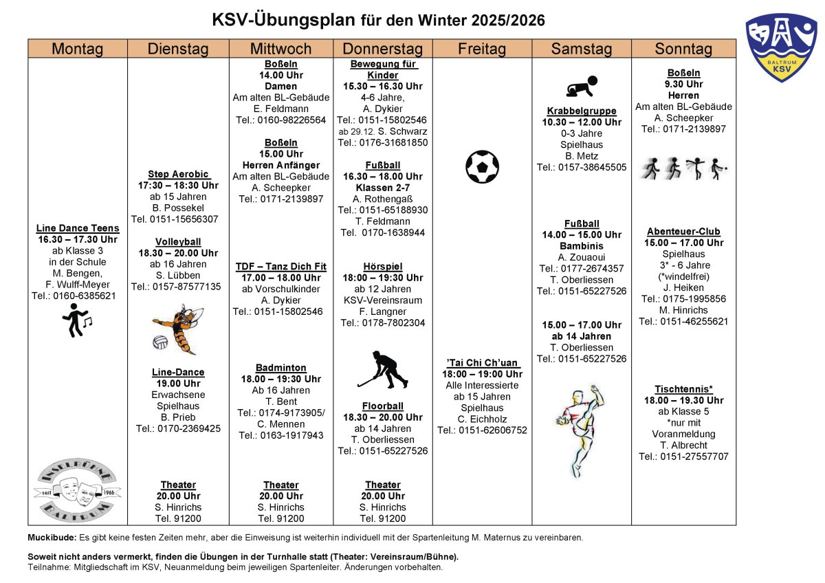 Anbei noch einmal der aktualisierte Übungsplan ergänzt um das neue Angebot.
