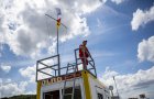 Neue Schilder am Strand, und die rote Flagge ist weg! Pünktlich zur Hauptsaison mit Beginn der NRW-Sommerferien ist der gelbe DLRG-Container wieder besetzt. Alexander Dombrowski ist am Sonnabend angereist und hat klar Schiff gemacht, sodass alle Funktionen und Aufgaben erfüllt werden können – "Alles im grünen Bereich!" freut er sich. Nur weiße Kreide hat er noch nicht so schnell besorgen können zum Beschriften des wichtigsten Schildes am Badestrand: Hoch- und Niedrigwasser, Badezeit, Wassertemperatur, Lufttemperatur und Windrichtung. Diese Auskünfte gibt er jetzt noch mündlich.