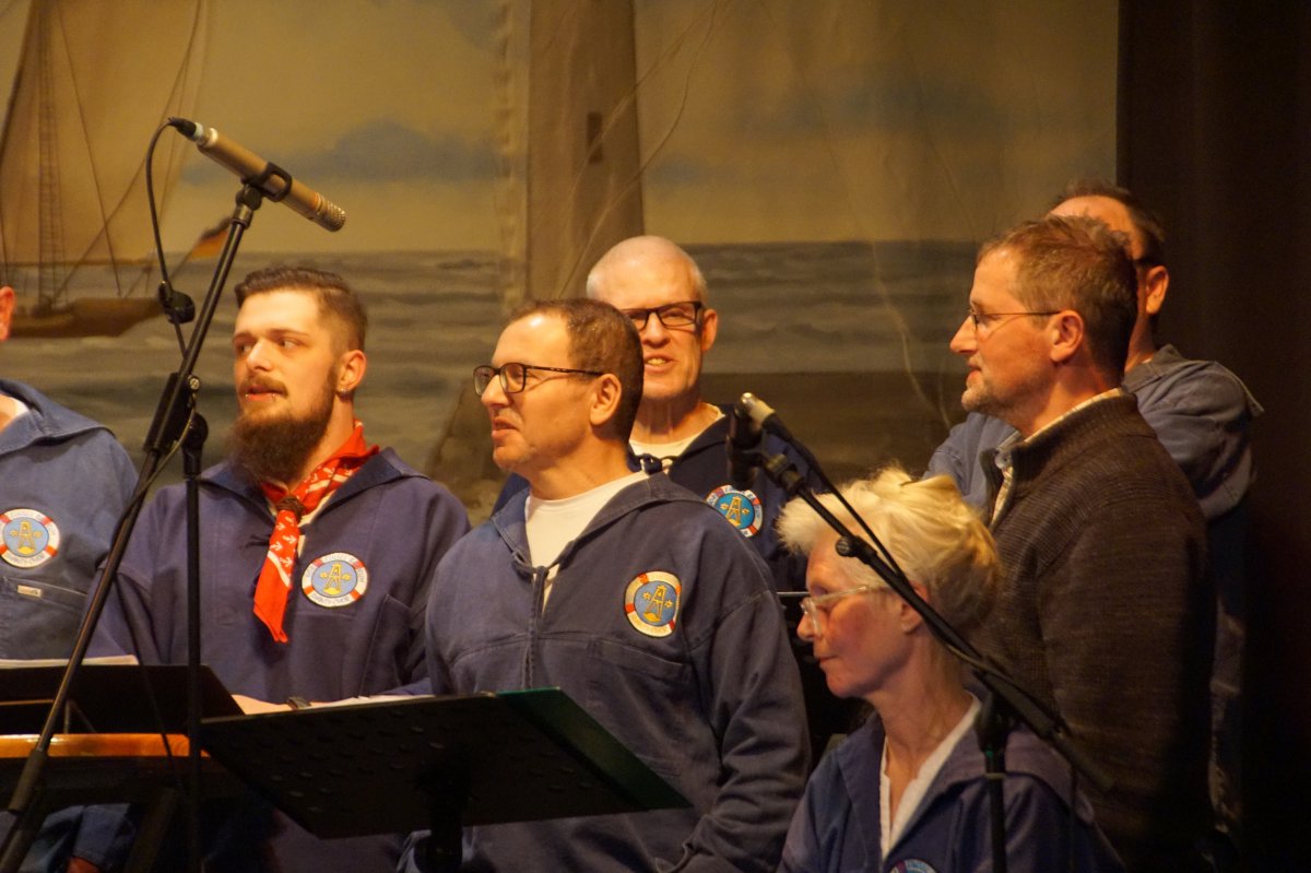 Der kunterbunte Streifzug durch die Welt der Seebären, nein Seeleute, und der sieben Meere, mit gefühlvoller Hafenromantik und Sehnsuchtsschluchzern nach den Liebsten hier und da kam gut an, und das Publikum im Saal wie der ShantyChor auf der Bühne hatten ihren Spaß.