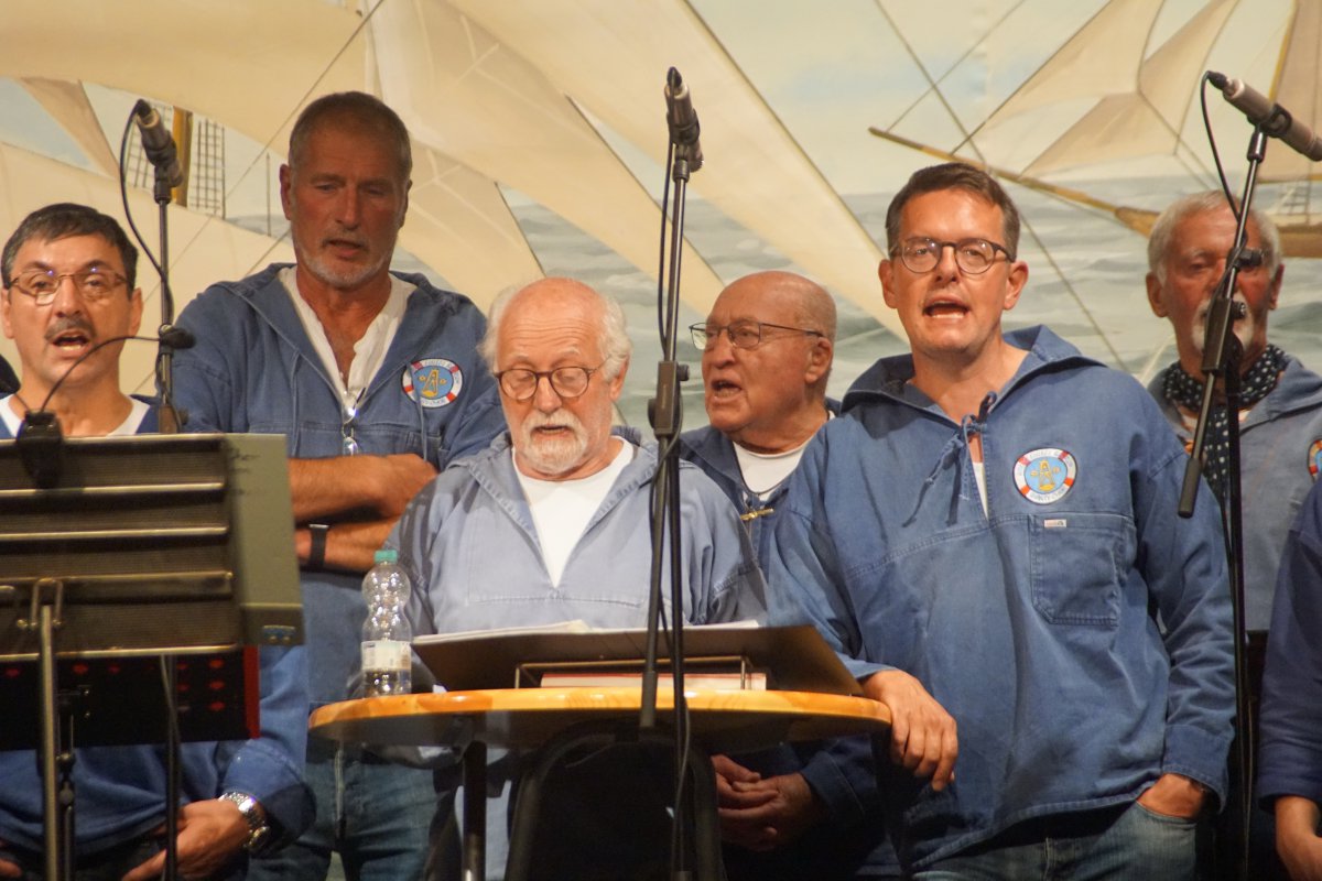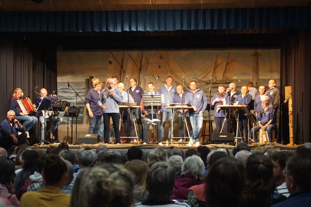 Nach einer nicht ganz freiwilligen Sommerpause standen die sangesfreudigen Männer des Baltrumer ShantyChors mit weiblicher und männlicher instrumentaler Unterstützung wieder auf der Bühne. Im gut besetzten Haus des Gastes erfreuten sie mit neuen und alten Shantys das Publikum. Unter der Leitung von Frank gaben sie ihr Bestes und warteten stets gespannt auf den jeweiligen Einsatz. Die Moderation übernahm Ulli und sorgte so für manche Erheiterung, und Knoten-Ecki beglückte Jung und Alt mit einer während der Vorstellung geknüpften Affenfaust (Wurfleinenknoten, auch als Schlüsselanhänger zu nutzen). Viel zu schnell verging die Zeit, und so waren alle erstaunt als es hieß „das letzte Lied“. Alfred hatte in der Pause ebenfalls sein Bestes in der Versorgung der Durstigen gegeben. Die Technik lag, wie schon lange, in den bewährten Händen von Thomas und Wilfried.