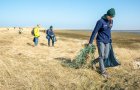 Am vergangenen Freitagabend hatte es in der Sonnenhütte auf Baltrum eine Auftaktveranstaltung gegeben, quasi als Einführung zu dieser Müllsammelaktion. Baltrum Rangerin Anette Müller erklärte die Verhaltensregeln im Nationalpark und teilte das Gebiet ein, sodass in Gruppen gesammelt werden konnte. Am Sonnabendvormittag ging es dann los: Ein Teil der Gruppe kam mit einer Munier-Kutsche zum NTB, wo die Fußgänger schon warteten. Dort wurden drei Gruppen gebildet, jede mit Müllsäcken und Wippe ausgestattet. Dann ging es bei sommerlichen Temperaturen und strahlendem Sonnenschein ins Gelände – bis ans Ostende!