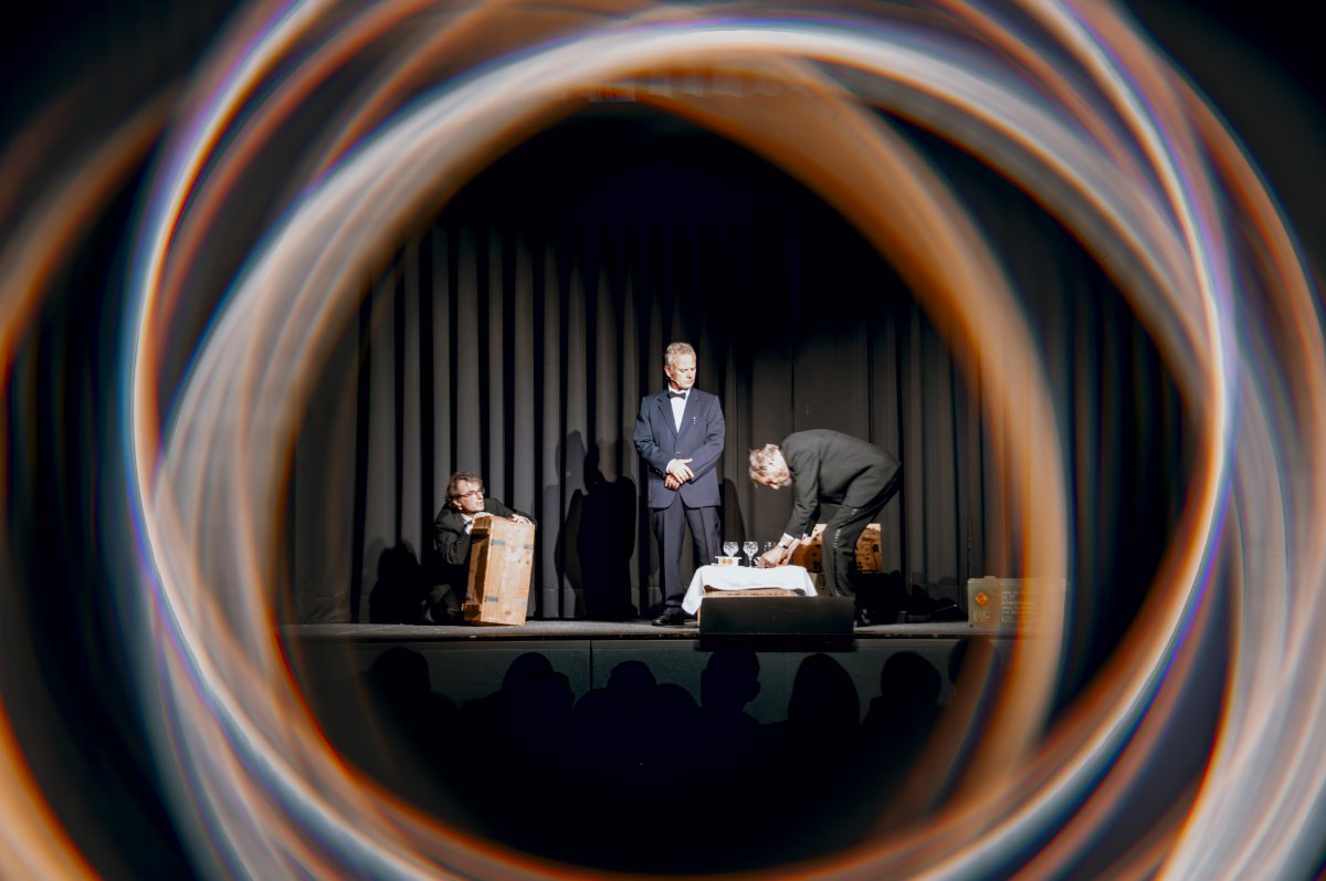Als Überraschung hatten die Eiländer die „Passagiere“ im Saal, die zuvor charmant aufgefordert worden waren, sich an der Bordtheke mit Bordproviant auszustatten (ohne die Spucktüten zu vergessen), in das Maritime und die Materie eingegroovt. Die drei Eiländer Arnold Abram, Udo Bengen und Torsten Moschner stimmten das Publikum auch optisch ein, ein wunderbarer Auftakt, der dem an sich kurzen Stück zu etwas Luft verhalf.