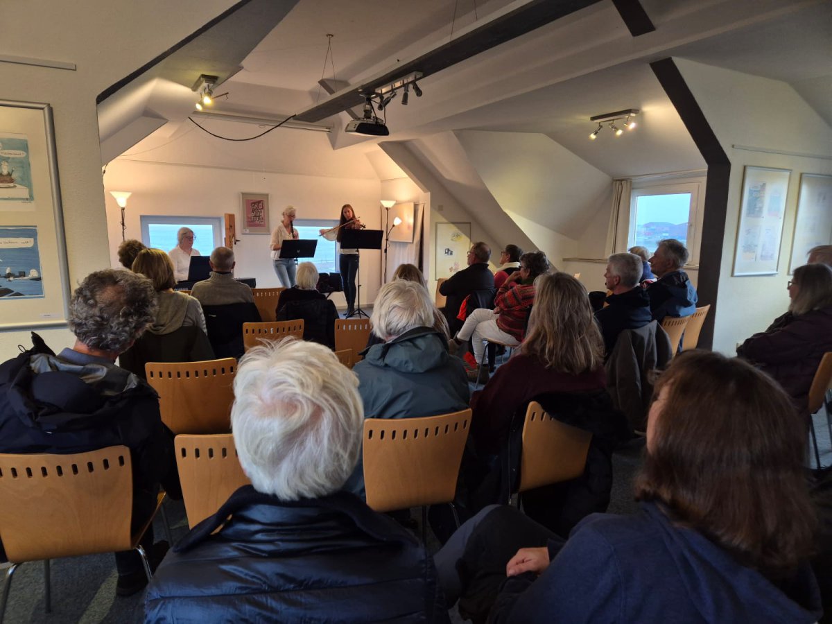 Fröhlich und hochkonzentriert beendeten die Damen von Nipptied ihr musikalisches Programm für 2025 im oberen Stock des Nationalpark-Hauses an diesem stürmischen Sonntagnachmittag des 26.Oktober 2025. Musikbegeisterte hatte sich nicht beirren lassen und fanden trotz Sturms und Regens den Weg zum Nordseehaus.