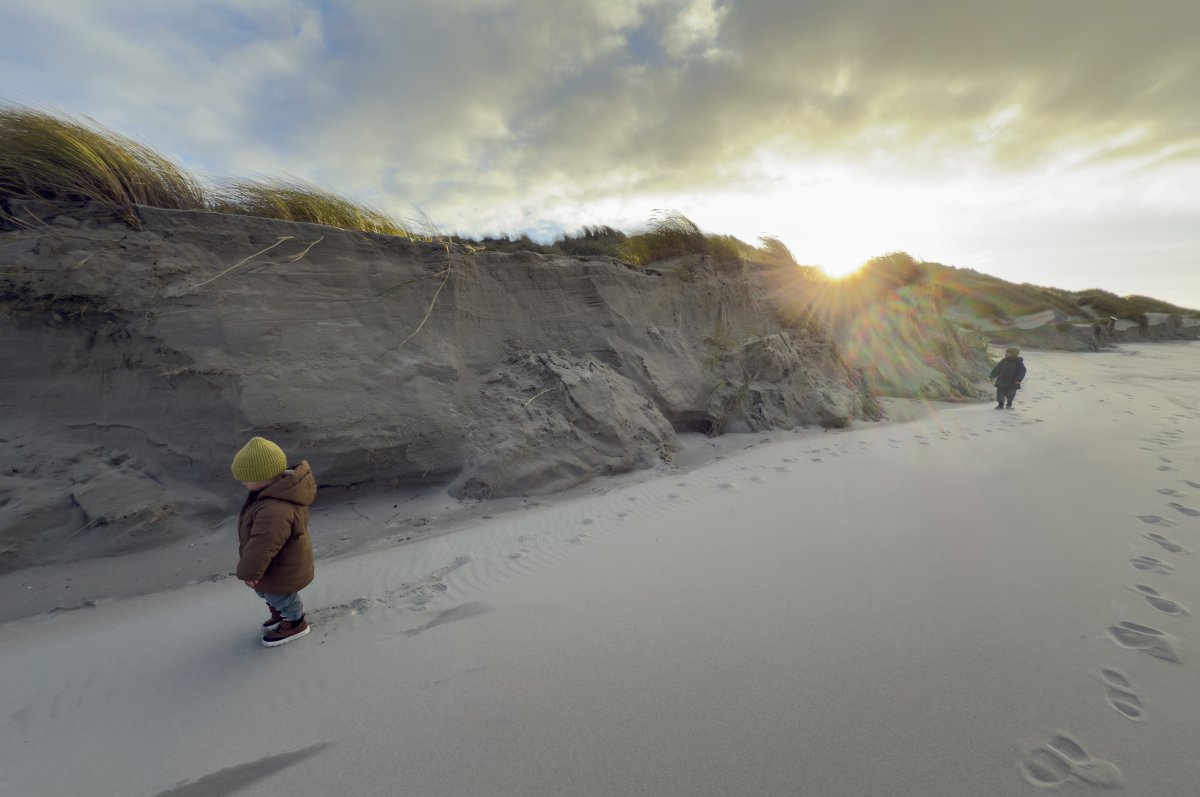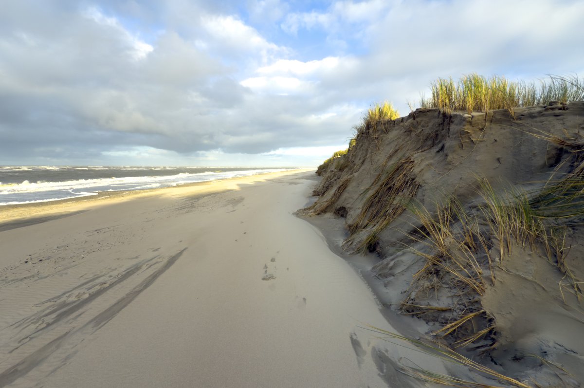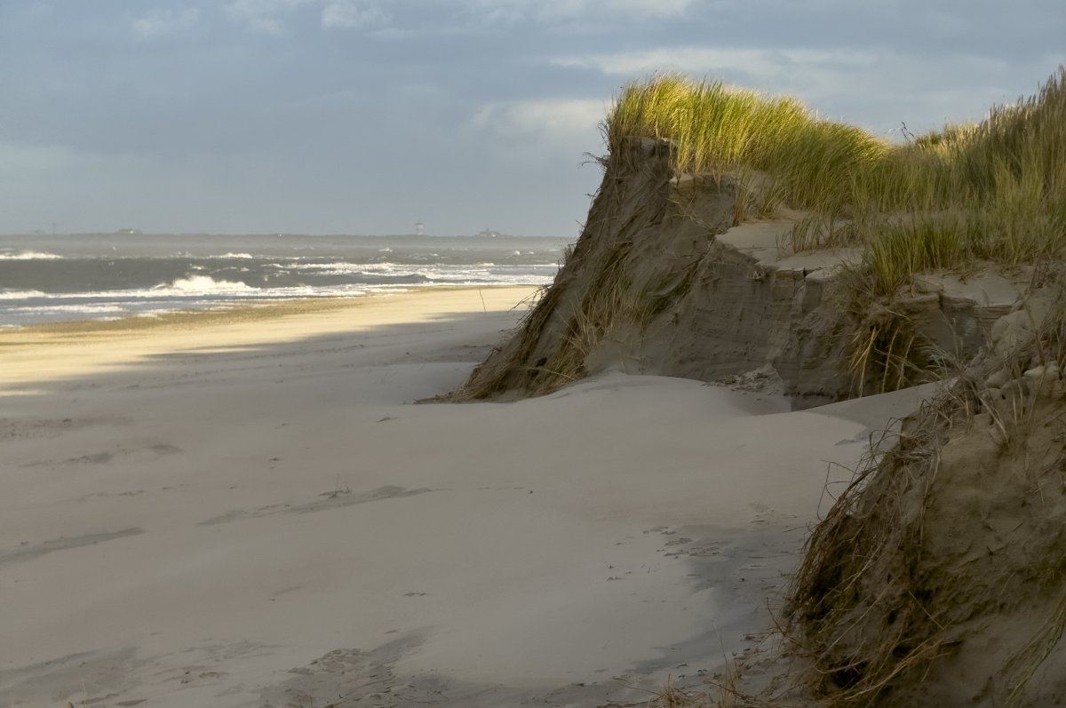 Joshua hatte es in sich... die Hochwasser des Sturmes waren zwar nicht dramatisch hoch, aber an der neuen Schwachstelle im Knick am Nordstrand haben die Wellen ordentlich Sand abgetragen, sodass jetzt das Schild hoch über der neuen Kante steht. Diese war im Sommer dort noch mindestens zwölf Meter weit weg. Und so niedrig war das Strandniveau an dieser Stelle seit ewigen Zeiten nicht. Also, nicht, dass ich wüsste.