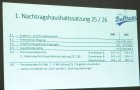 Der erste Nachtragshaushalt 25/26 wurde ebenfalls einstimmig und ohne Debatte gefasst. Dennis Pollmann stellte das Zahlenwerk vor und erläuterte die Änderungen.