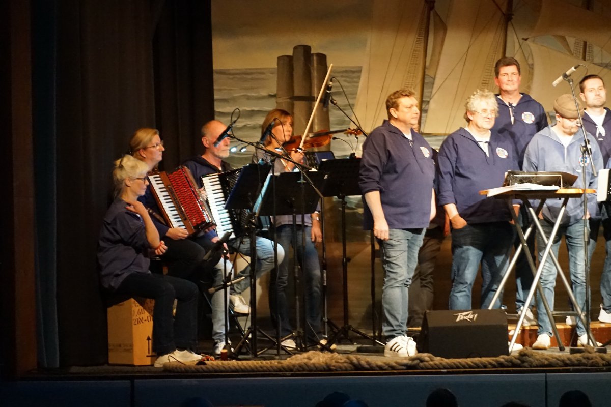 Die Moderation, der Gesang der Shantymen, die Instrumente, die Technik und die Pausencrew rundeten den Abend zu einem Vergnügen ab, bei dem auch das Abschlussgetränk nicht fehlen durfte.