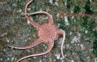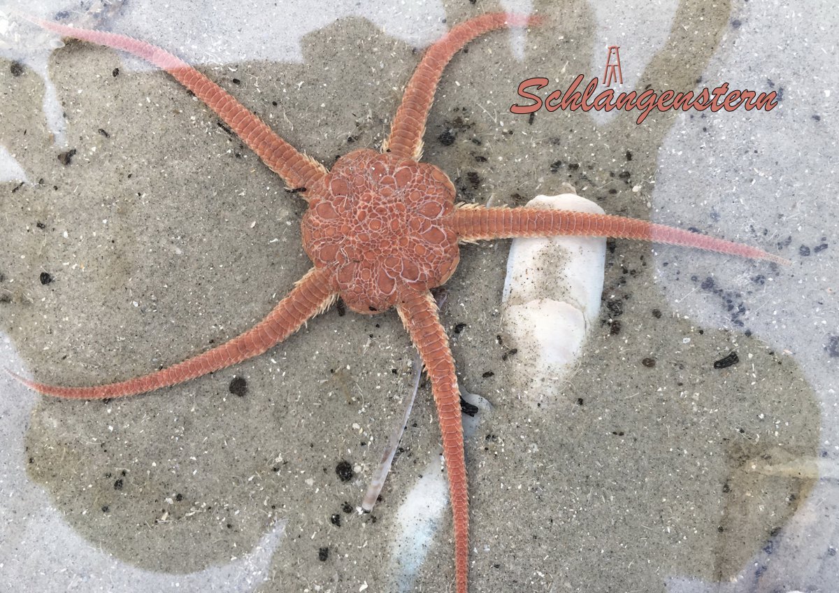 Ähnlich in der Form ist auch der Kammstern (Astropecten irregularis), welcher nicht so oft entdeckt wird. Vielleicht kommt es daher, dass seine Füßchen keine Saugscheiben haben, deshalb lebt er meist eingegraben im Sand. Interessant wird es, wenn eine größere Menge an Schlangensternen (Ophiura ophiura) anlandet. Bei näherer Betrachtung am Strand sind sie sehr beweglich und recht schnell in der Fortbewegung. Zu beobachten sind sie alle nicht sehr lange, denn hungrige Möwen und kleine Seevögel freuen sich über den reich gedeckten Tisch.
