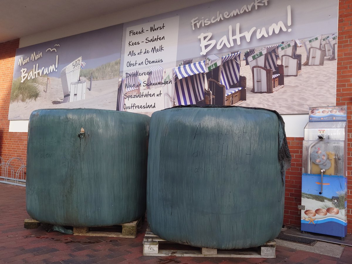 Nur heute hat der Frischemarkt Baltrum Heu-Rundballen für Selbstabholerinnen und Selbstabholer im Angebot!