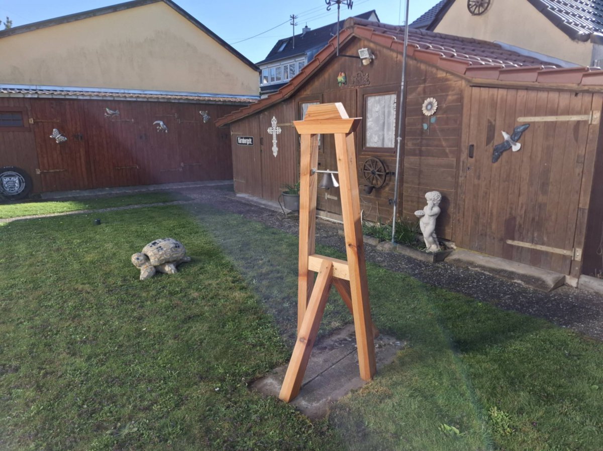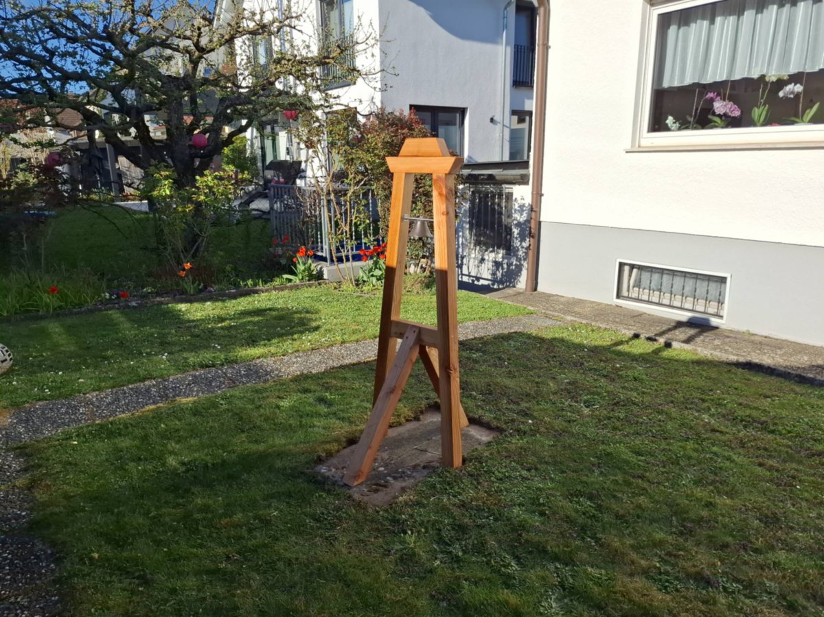 Pünktlich zu Ostern stand sie im heimischen Garten von Frank Müller in Süddeutschland: Der treue Baltrum-Fan hat den Winter über an einem recht großen Nachbau der Baltrumer Inselglocke getüftelt, und die ganze Familie freut sich über ein weiteres Stückchen Baltrum zuhause.